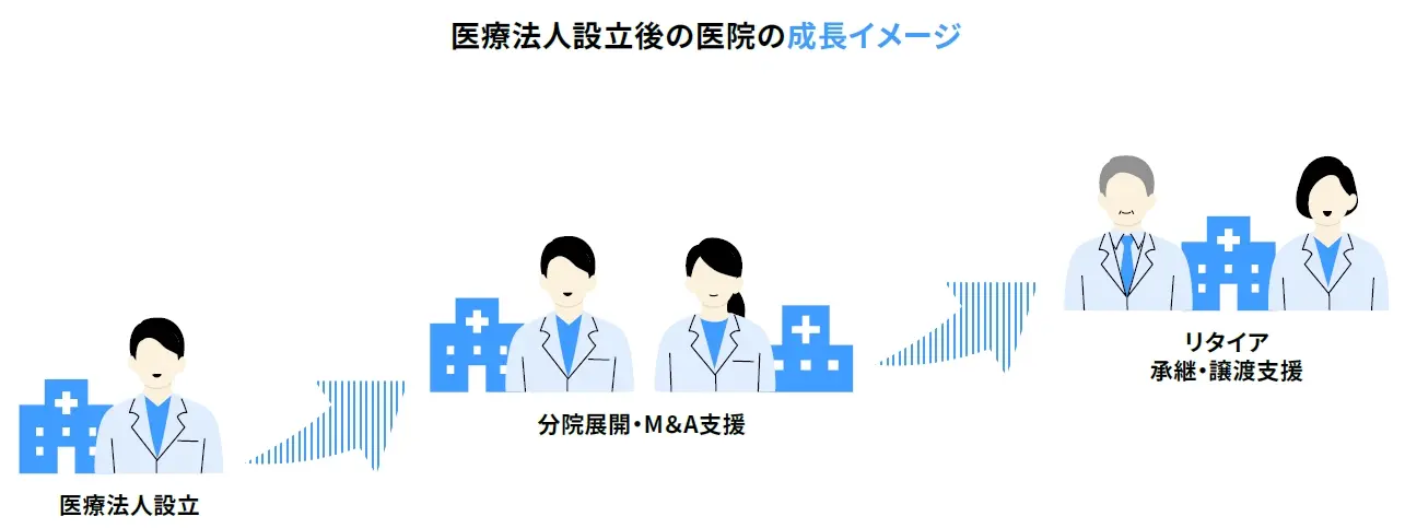 グループ内のM&A専門会社と提携し、候補となる歯科医院をお探ししてご紹介いたします。分院の開業についても、設立認可申請書の定款変更認可申請手続きや登記、保健所・厚生局等行政への申請などをサポートいたします。