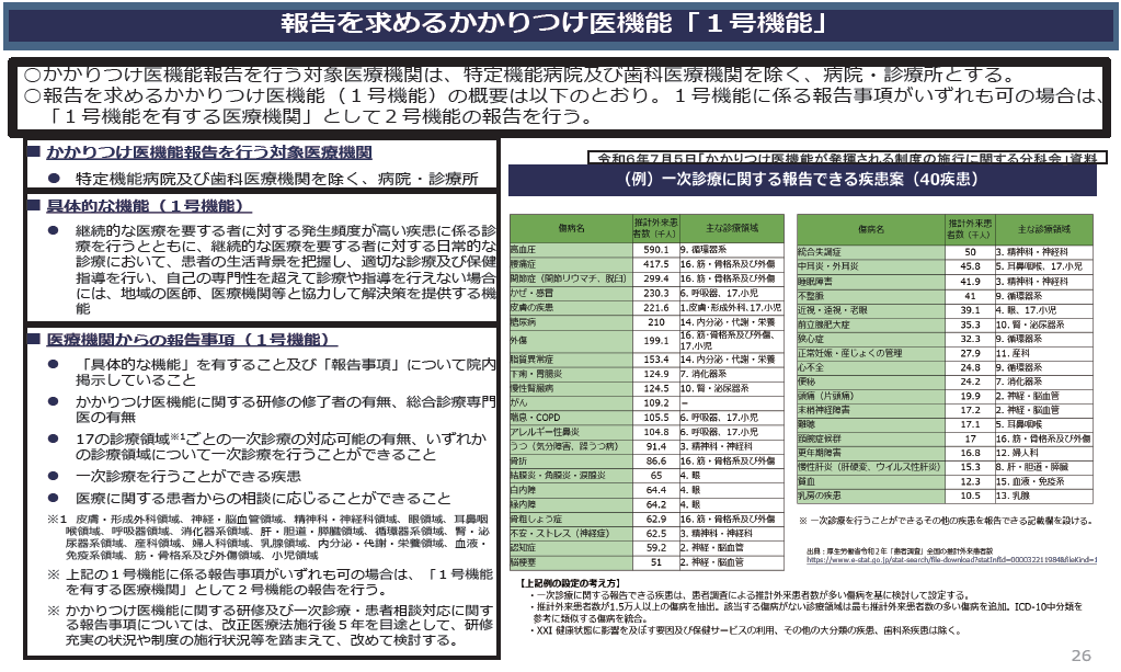 また、情報確保のため、医療機関が自院のかかりつけ医機能を都道府県へ報告する必要があります。