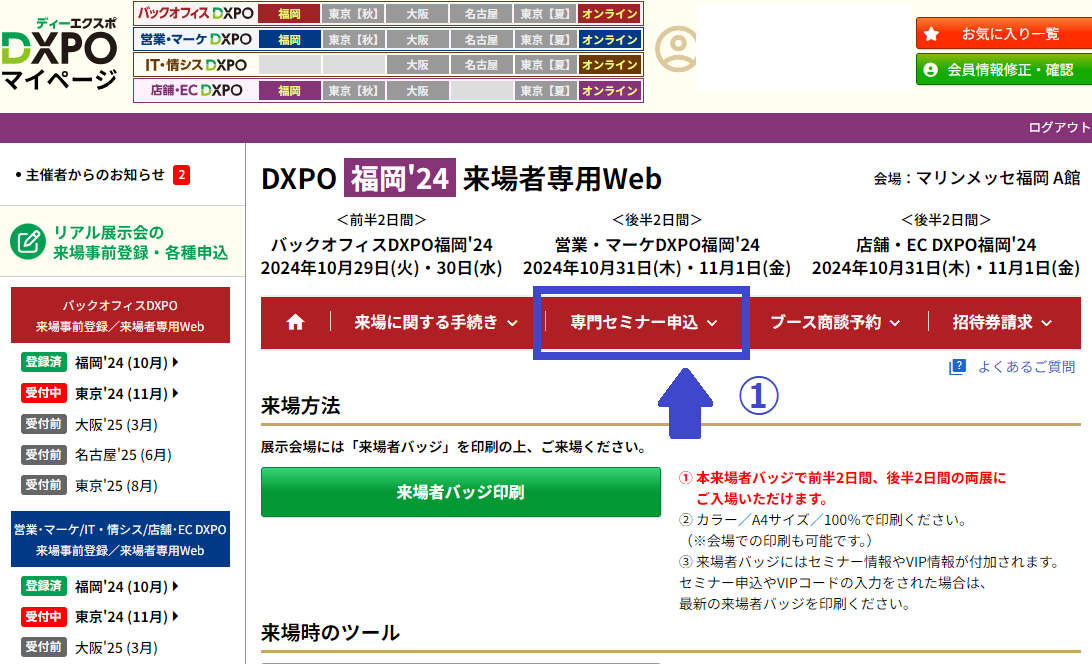 ※申込後、メールが送られてきますので、「来場バッジ」を印刷のうえセミナー会場までお越しください。