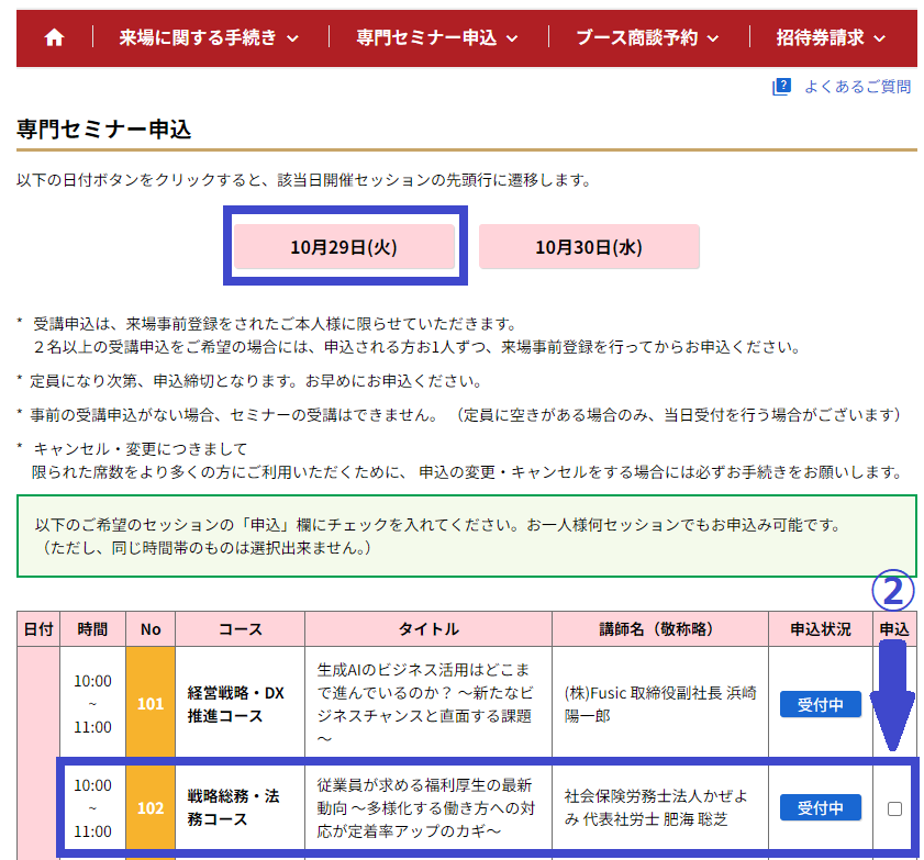 ↑ こちらより来場事前登録後、来場者専用webサイトにて別途セミナー参加の申し込みが必要となります。