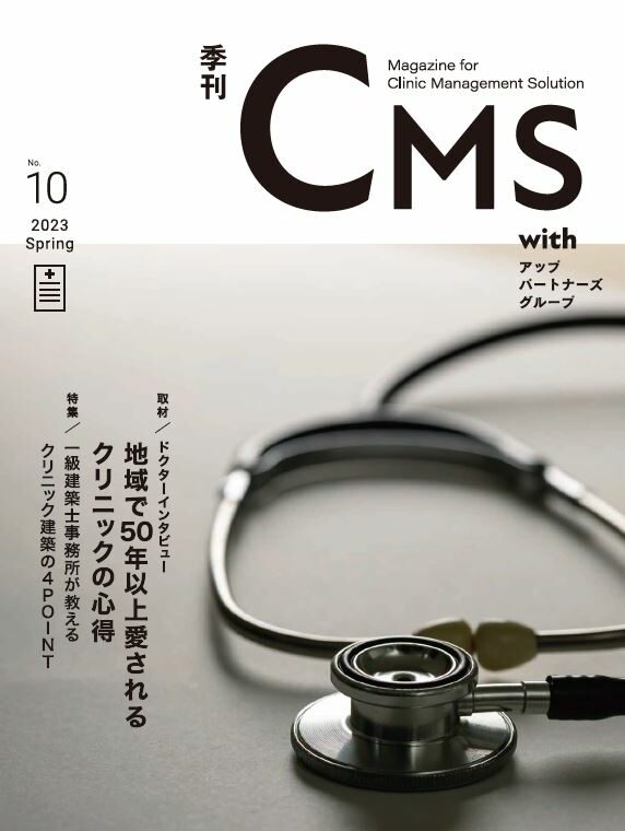 季刊CMSは自社制作の医療機関向けの経営情報誌で、年に4回発行しております。今号では、北九州市門司区の内科・小児科 辻医院様へのドクターインタビューをはじめ、一級建築士事務所のグローバルアーキテクツチーム・ガットの吉浦様に伺った「クリニック建築のポイント」などについて特集しております。