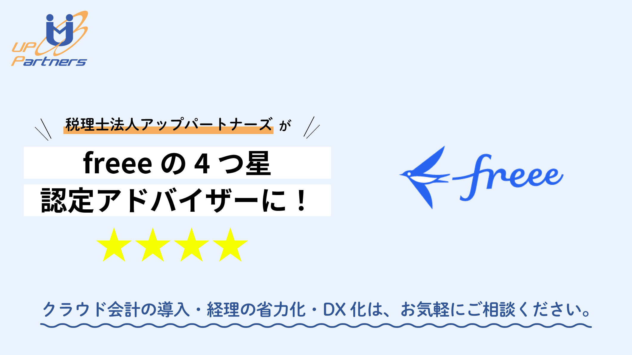 この度、税理士法人アップパートナーズはfreeeの4つ星認定アドバイザーにランクアップしました。