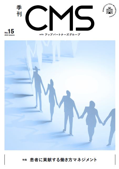 季刊CMSは自社制作の医療機関向けの経営情報誌で、年に4回発行しております。今号では、福岡市東区のかしい駅前内科・脳神経クリニック様へのドクターインタビューさせていただいております。また、アップパートナーズスタッフによるコラムでは税務部門から「医療機関のインボイス対応について」、労務部門からは「両立支援等助成金」について、その他にも医療時事や資産運用、相続などのコラムをご紹介しております。