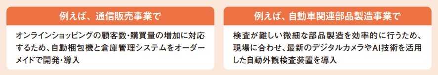 <一般型>・・・個別の現場設備や事業内容等に合わせたオーダーメイド製品に活用できるもの。※単なる機械の入れ替えだけではNGです。