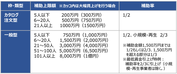 補助率 カタログ型➔1/2、一般型➔1/2、小規模・再生2/3