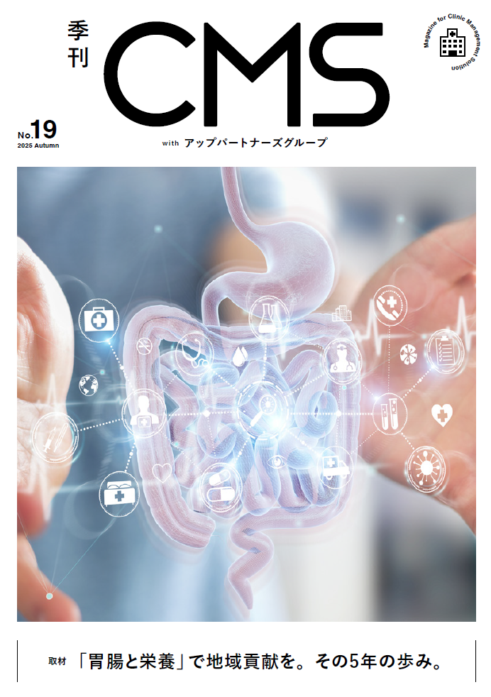 今号では、宮本内科胃腸栄養クリニックの宮本彰俊先生にご自身の歩みや診療のこだわりなどについて伺っています。また、アップパートナーズスタッフによるコラムでは税務部門から「医療機関が検討すべき年収の壁対策」、保険部門からは「休業への備え、できていますか?」、その他にも医療時事や労務などのコラムをご紹介しております。