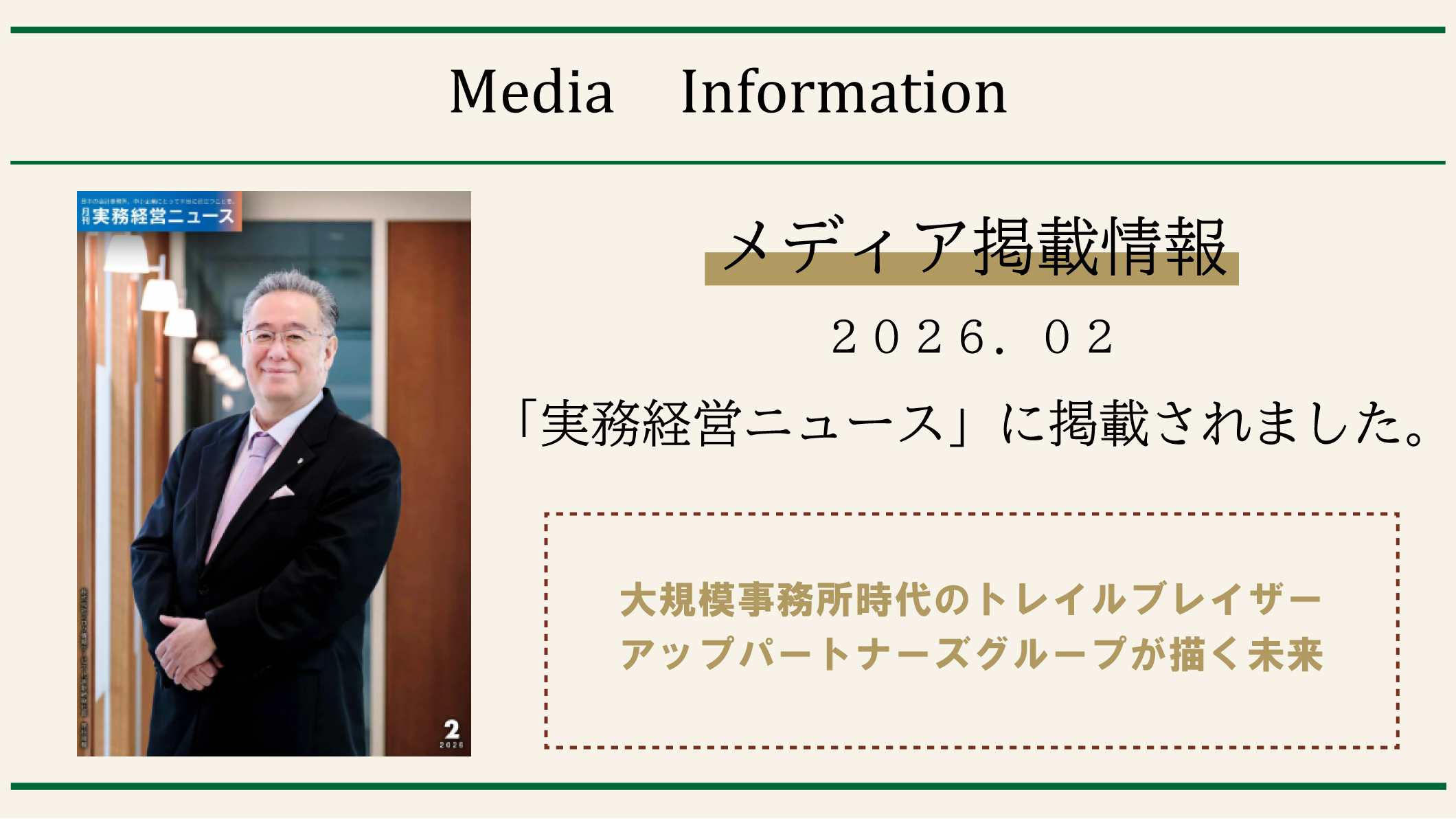 1月25日発行の「月刊 実務経営ニュース」2026年2月号にて、弊社代表 菅のインタビューが掲載されました。