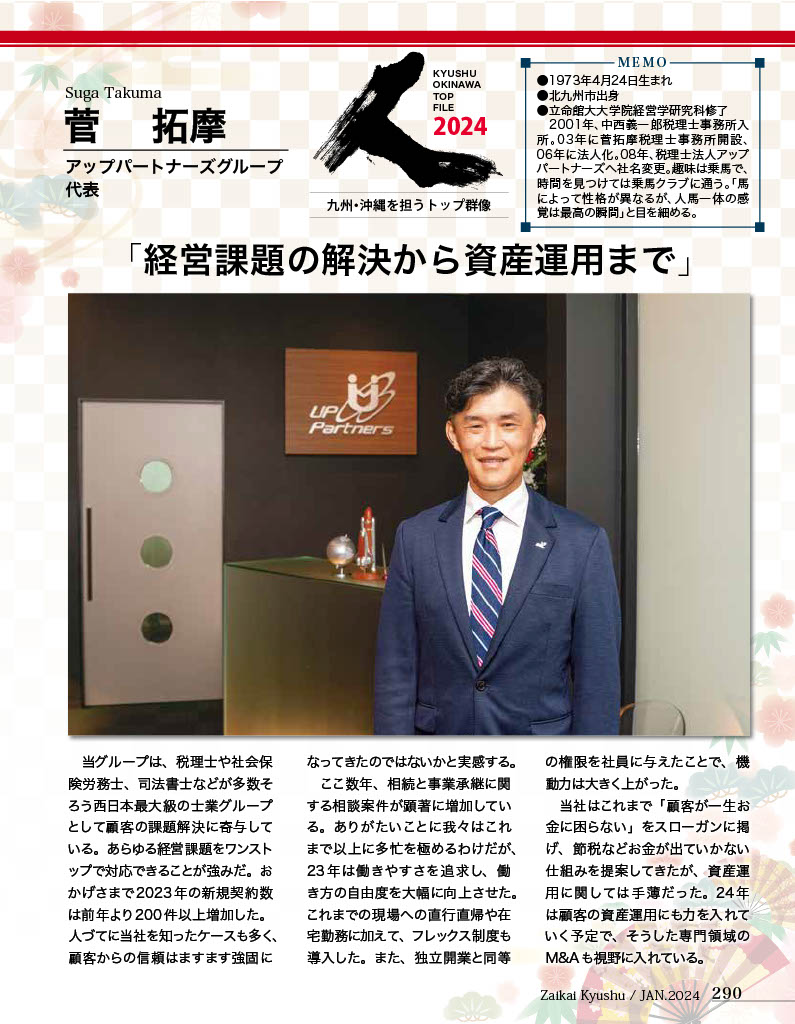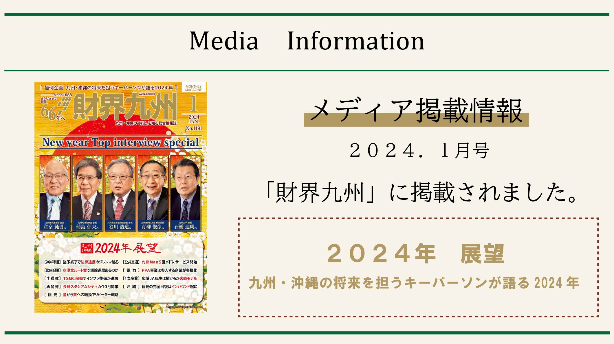 九州の経済情報誌「財界九州 1月号」の特集記事に、弊社代表 菅のインタビューが掲載されています。