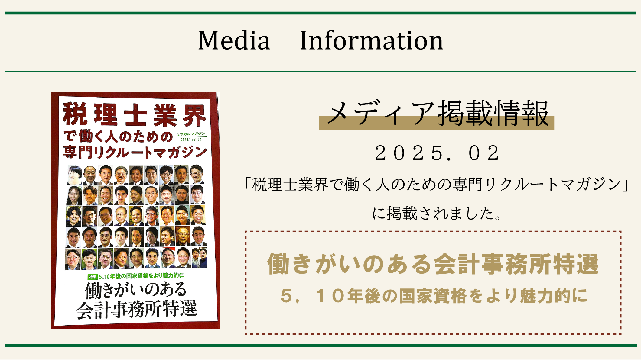 「税理士業界で働く人のための専門リクルートマガジン ミツカルマガジン2025.1 vol.02」に、弊社代表 菅のインタビューが掲載されました。