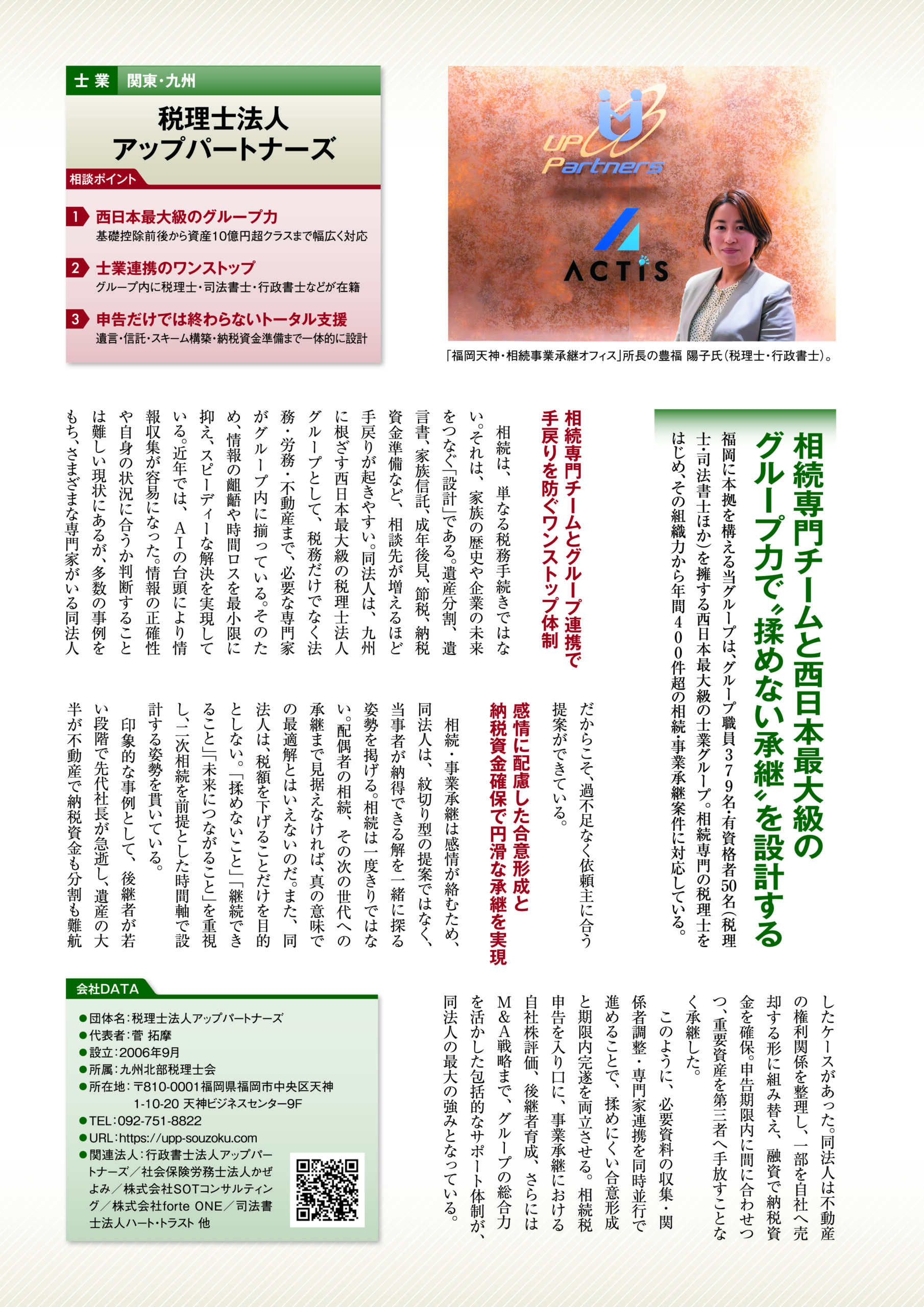 文藝春秋「失敗しないための相続・事業承継読本2026」の「相続・事業承継に頼れる専門家、支援機関50」で、福岡天神・相続事業承継オフィス所長 豊福のインタビューが掲載されました。