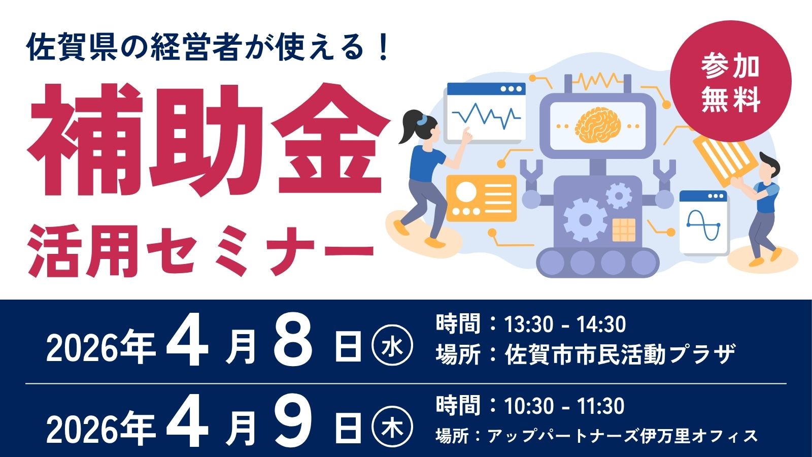 本セミナーでは、佐賀で事業を展開される皆様に向けて、今すぐ知っておくべき補助金の最新動向と、確実に採択を狙うためのリアルなノウハウを大公開いたします。参加費は完全無料です。ぜひこの機会を自社の成長にお役立てください!
